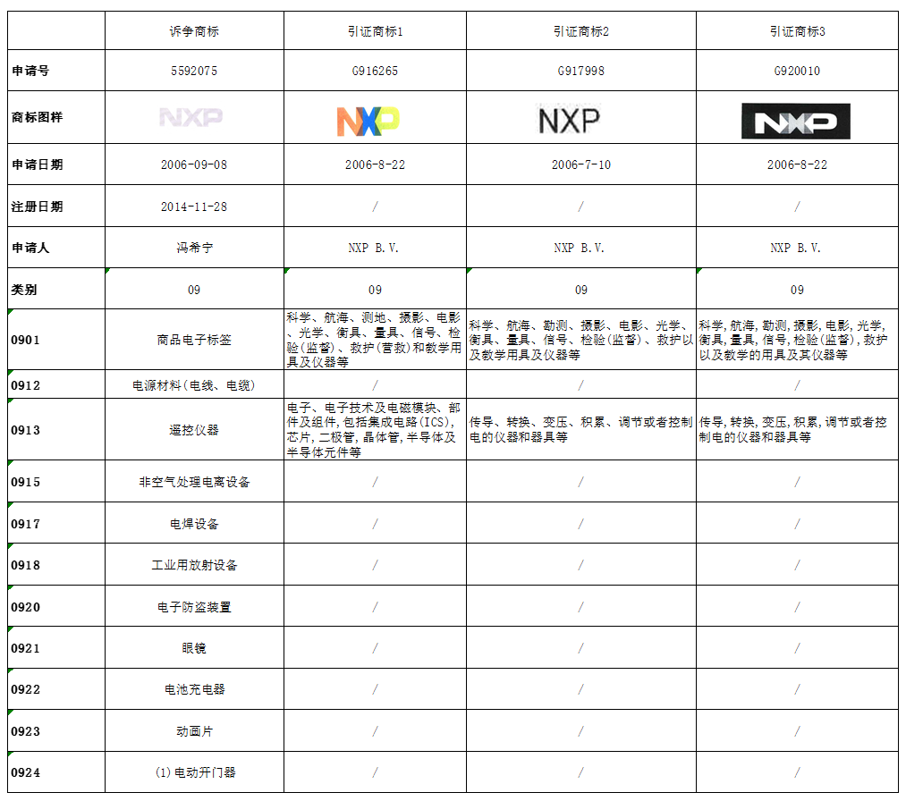 (一)案例一:第5592075号“NXP”商标异议案[1]